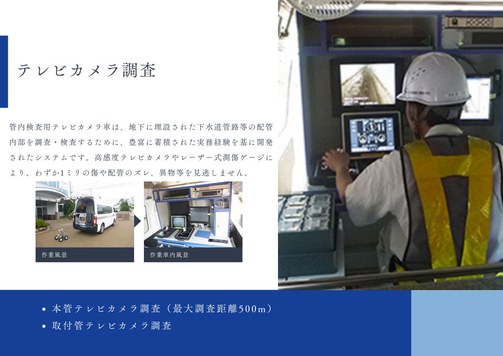 管路内に付着した汚れを除去し、機能回復を図るため、省水量・節水型ジェット・サイクロン旋回洗浄工法 による洗浄を行っています。